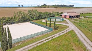 🔸Establo con 4 amplios boxes y potreros con acceso directo a la dehesa, 2 boxes adicionales y un potrero cubierto para 6 caballos, picadero, corral circular, potreros y zona de césped – maravillosa zona de equitación a través de los viñedos directamente desde la casa.